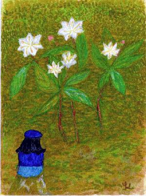 | "Nyt olen päässyt perille, ja omani täällä saanut. Katson kukkalehtesi terille, olet kauneuden niille jaanut. Tiedän löytäneeni itseni, tänne haltiaksi jään. Otan saaren suojatikseni, Täällä tehtäväni nään. Olit polte sisälläni, kohde retkelläni. " |