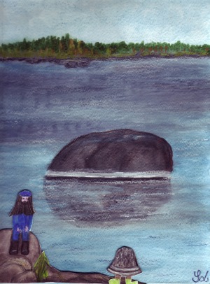 Seuraavana aamuna istui saaren ukko rannalla yksinään.