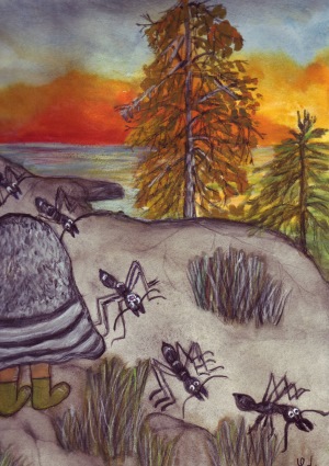 Kovin tunsi Kääpänen itsensä onnettomaksi ja yksinäiseksi.Nyt olisi tavattava ystäviä! Se tiesi, että heillä maahisilla oli tapana käydä maan päällä tiedusteluretkillä muurahaisiksi muuttautuneina. Muuttuminen muurahaiseksi oli mahdollista maahisten päässä olevan taikakiven avulla. Sen oma taikuus oli nyt vaan jumissa käävän alla. Se alkoi nyt tarkkailla muurahaisia niiden polkujen vieressä ja eräänä päivänä se tapasikin tutun kulkijan muurahaisten rivissä. Apua pyydettyään sai Kääpänen kuulla tylyn totuuden: "Ei maahiset maan päällä voi auttaa, on saatava apu maanpäällisiltä!"