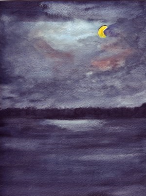 Valokin saaren pinnalla väheni kuun kulkiessa pilvien pehmeän peiton alle.