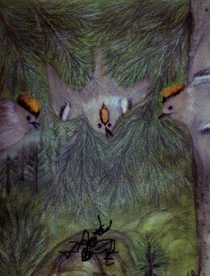 Hippiäiset lensivät rantakuusikon suojaan. Sinne meni myös pelästynyt maahinen. Ja taas se näki lintuja, joilla oli komeat päähineet. Miksiköhän nämä piipittäjät pystyivät muuttumaan? Mutta hippiäisethän eivät muuttuneet miksikään. Lensivät vain taas tiehensä nopeasti!