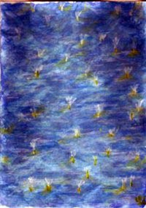 | Kun lyhdyt loistaa veden pinnalla, ja kaikkialla välkehtii, Aallotarko silloin haltiain rinnalla meren kätkössä juhlehtii? Siinä vesilyhtyjen hohteessa epäillä vankasti pitää, että tässä tarkkailun kohteessa tapahtuu, vaikkei näy mitää. |
