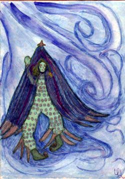 | Kas vesipoika tuli ja ovelasti nyökkäsi. Sepä ei vedessä muli vaikka aalloista hyökkäsi. Odotella käski,se oli sanoma sitä ei enää malttaisi millään. "Eikö jo toiveeni hartaana anoma perille menisi sillään! Kuuleppas nyt poju, en täällä turhaan loju!" |