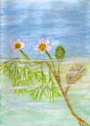 | Hei veteen kasvatettu, mitä kaikkea saatkaan aikaan! On olosi ovela kuin kettu, liityt rannalla ystävyystaikaan. Siinä vaan hennosti aallossa heilut. Nostat itsesi pystyyn. On varmaan aikeesi aivan reilut. Avaat kukan joka nystyyn. Missä haltiasi kurkkii? Sitä kaikki urkkii. |