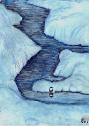 lumen keskellä joki jäinen