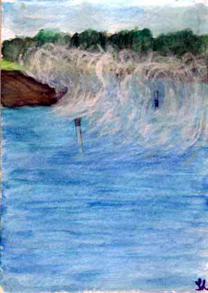 | "Vie viesti elohalla! Kerro metsästämme. Kanna tieto usvalla! Hoe jäkälästämme. Tapiota tarvitaan myäs meren mäellä. Apuanne kaivataan nyt veden väellä." Hiljaa hiipi hättä hallan. Kulki kohti rantaa. Aalloista otti vallan. Kylmää kiville kantaa.
