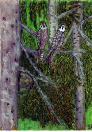 | Tulivat ne linnut kummat saaren puuhun istumaan. Pistivät nuo kulmat tummat puiden oksilta katsomaan. Ovatkin Tapion väkeä, keräävät meritietoa. Osaksi metsän mäkeä auttavat saaren kietoa. Iltaisin oksalla kelon Istui joitain parempia. Toivat pääskyille pelon. Tuli pienistä arempia.