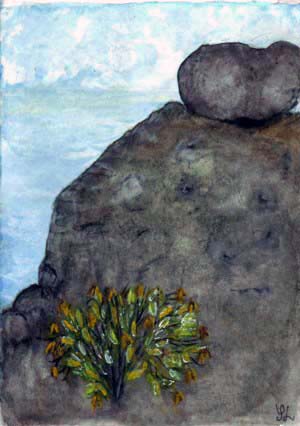 | "Uutta kasvua nenäni edessä. Täälläkä alkaa tapahtua? Menoa kuin kaloilla vedessä. Meinaako haltia onnistua? Kaunista on, mutta mitähän tuumaa? Täällähän voi tulla kivellä kuumaa. En haltiaa helpolla päästä. Onhan mulla ote säästä."