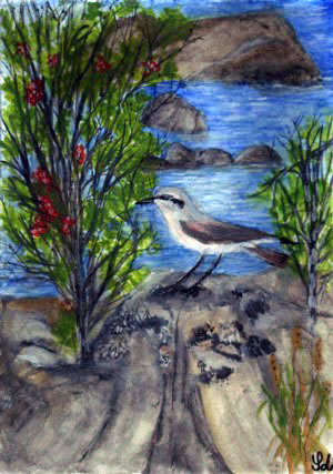 Säilyi rannalla lintu niiaava.