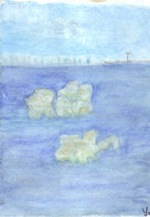 | Pois kahleet jään! Nyt aurinko tekee kesää. Kera lämpimän sään pian laulajat laittaa pesää. Veden kalvossa valkoista lelluu. Laineilla lempeää liitää. Meren pinnassa patsaita kelluu. Aalloilla kaunista kiitää. Mikä siintää rajassa taivaan? Tekikä lämpä muurin? Sekä siirtyy pilvessä laivaan? Ottiko valo tuurin?