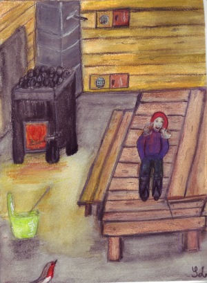 Saunatonttu nousi vanhan kiukaan takaa ja kömpi ulos. Totta se oli. Rannassa komeili uusi, sininen sauna. Tonttu kiiruhti tutkimaan uutta työpaikkaa.Asettui sinne ja kaikki kurjuus korjaantui. Oli hieno huomata , kuinka kipeästi uusi sauna tarvitsi haltiaa. Tarpeettomuus oli onnetonta , ei ollut menossa mukana. Oliko ONNEA TUNTEA ITSENSÄ TARPEELLISEKSI?